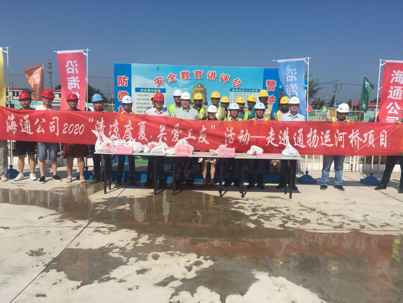 慰問過程中,海通公司副董事長孟曉楠強調(diào):希望施工單位務(wù)必要做好防暑降溫工作,科學(xué)管理,合理規(guī)劃工人在室外高溫作業(yè)時間,注意勞逸結(jié)合,注意防暑降溫,防止中暑引發(fā)安全事故。在保證安全施工、確保施工人員身體健康的前提下,繼續(xù)加強工程安全和質(zhì)量意識,保質(zhì)保量完成各階段目標(biāo)。