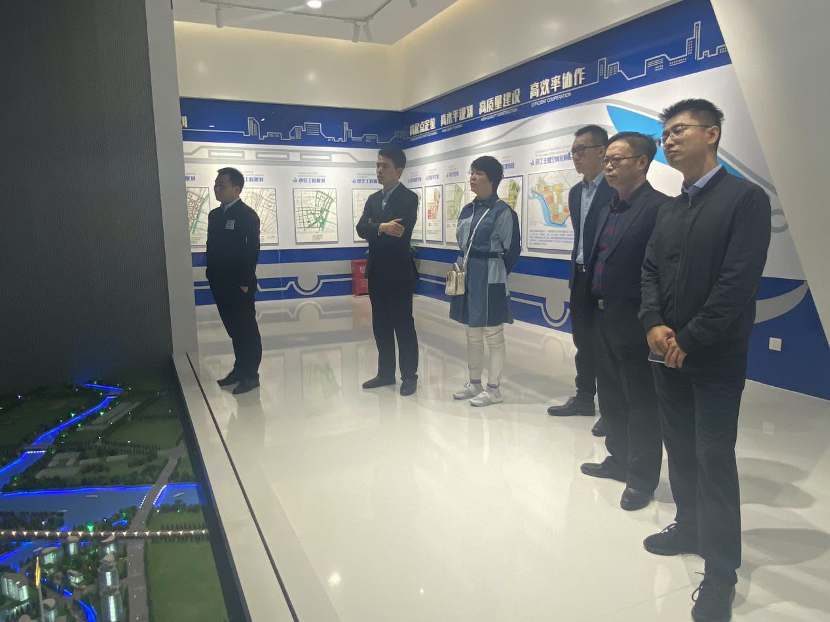 郁瑞芬一行首先來到南通西站片區(qū)指揮部,眺望周邊建設(shè)情況,并實(shí)地察看片區(qū)現(xiàn)場地塊;在隨后的交流會(huì)上,丁宏偉從規(guī)劃設(shè)計(jì)、交通路網(wǎng)、配套設(shè)施建設(shè)等方面詳細(xì)介紹了片區(qū)目前各項(xiàng)工作推進(jìn)情況。