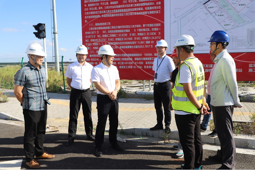 江宏一行深入實地查看了江安路道路工程、三夾沙東港池開挖工程的安全生產(chǎn)情況,聽取了在建項目安全生產(chǎn)工作落實情況的匯報,詳細了解了各在建項目迎接“雙節(jié)”的安全保障措施。