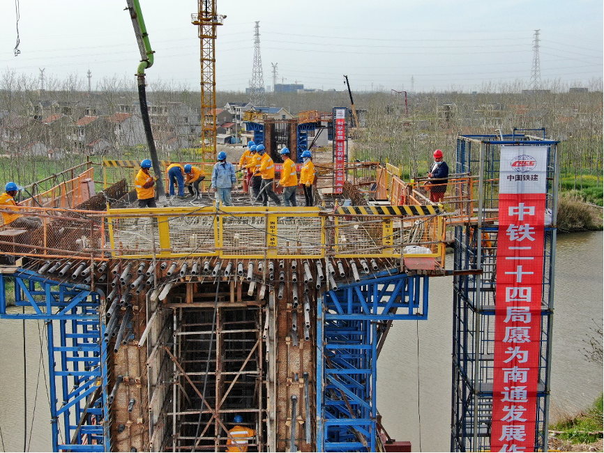 4月9日,由中鐵二十四局路橋公司參建的南通洋呂鐵路1標(biāo)跨念一總運(yùn)輸河連續(xù)梁231#主墩0號(hào)塊混凝土順利澆筑,本次澆筑也是洋呂鐵路全線首次連續(xù)梁混凝土澆筑,標(biāo)志著該工程正式邁入上部結(jié)構(gòu)施工階段。
